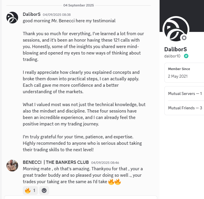 If you’re serious about transforming your trading results, The Bankers Club is your gateway to mentorship inspired by the methods used in institutional trading rooms. I will be teaching you methods that will enable you to know and see exactly whats taking place in the markets and how to successfully navigate them