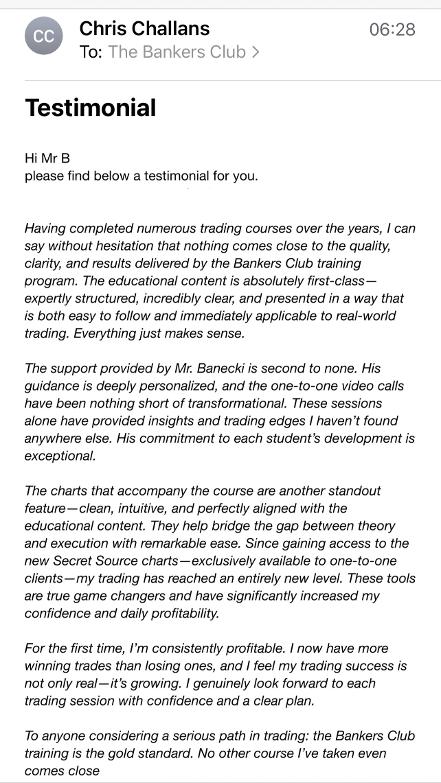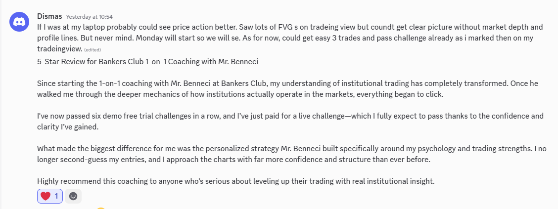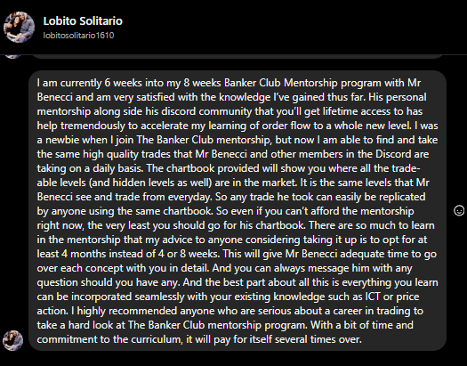 If you’re serious about transforming your trading results, The Bankers Club is your gateway to mentorship inspired by the methods used in institutional trading rooms. I will be teaching you methods that will enable you to know and see exactly whats taking place in the markets and how to successfully navigate them